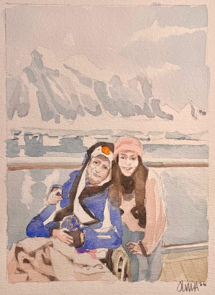 Six years on, Michelle is telling that story. Weaving the tale of their adventure at the end of the world in 2020 with snapshots of sitting together while Eileen reached the end stages of the disease in 2022. Audiences are invited on board the ship, to the dance party amongst the icebergs and into quiet rooms where things beep too loud.